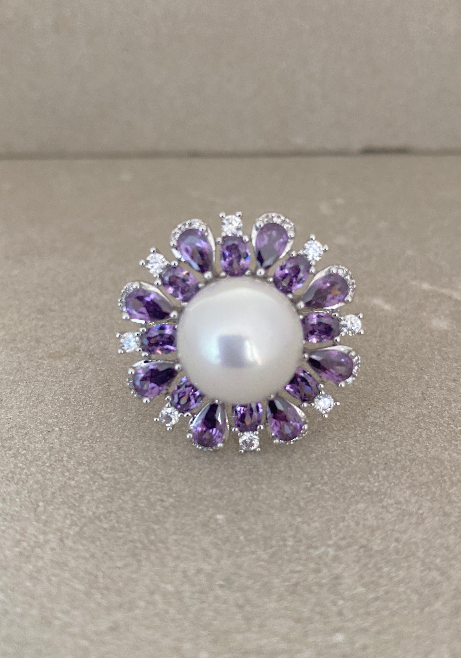 Embrace its playful yet sophisticated allure. It’s perfect for gifting or as a delightful treat for yourself. Celebrate your unique style with this eye-catching silver alloy ring, showcasing the brilliant sparkle of CZ and the natural beauty of semi-precious gems. A true testament to modern fashion jewellery.