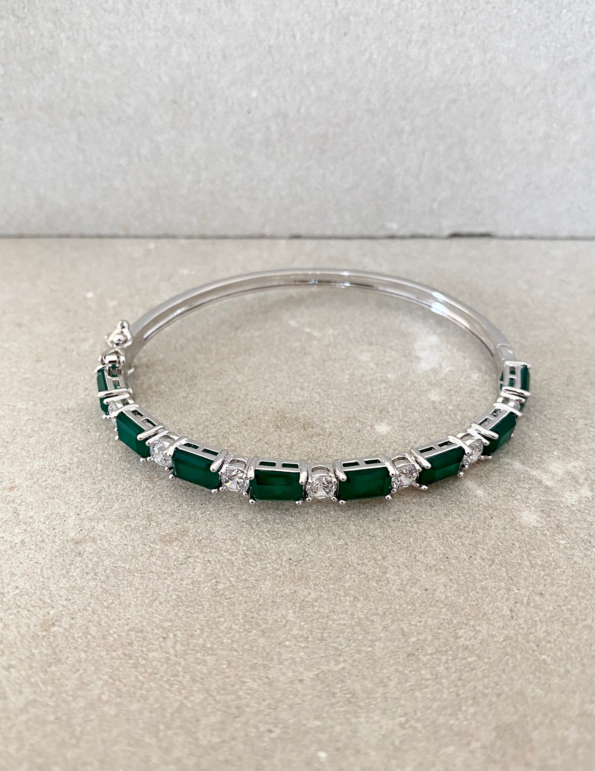Adorn your wrist with the captivating elegance of our Gemstone Bar Cuff Bracelet, a modern masterpiece designed to elevate your everyday style. This exquisite fashion jewellery piece boasts a sophisticated blend of premium silver alloy, known for its lustrous finish and durability, making it a perfect addition to any collection. The highlight of this cuff bracelet is its stunning array of dazzling cubic zirconia stones, meticulously set to catch the light, creating an irresistible sparkle. Interspersed with these brilliant CZs are carefully selected semi-precious stones, adding a touch of natural charm and vibrant color to the sleek bar design.