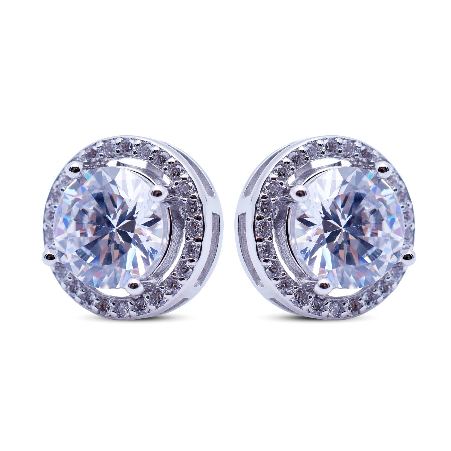 Classic Solitaire Halo CZ Stud Earrings in 925 Sterling Silver