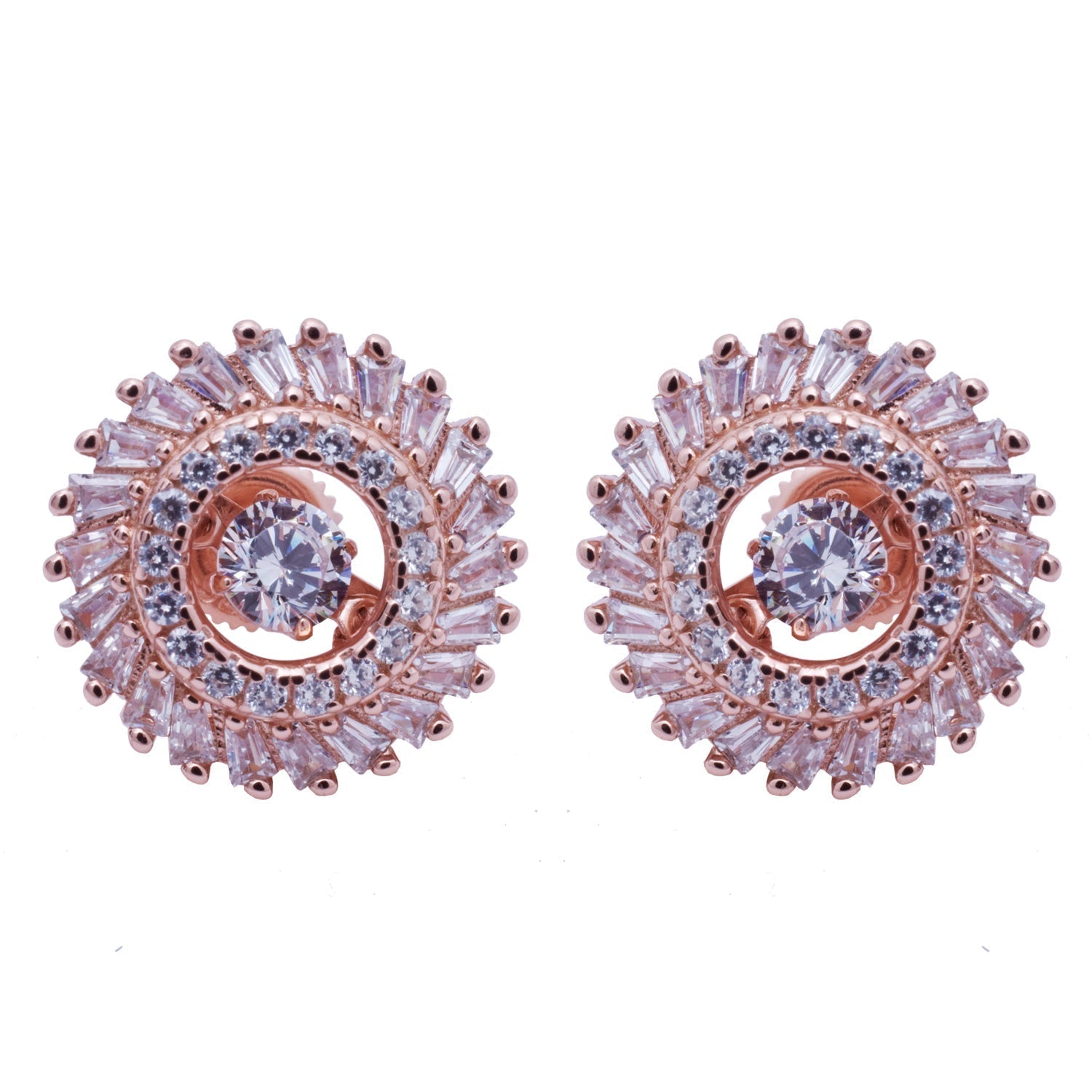 Rose Gold Dancing CZ Stud Earrings in 925 Sterling Silver