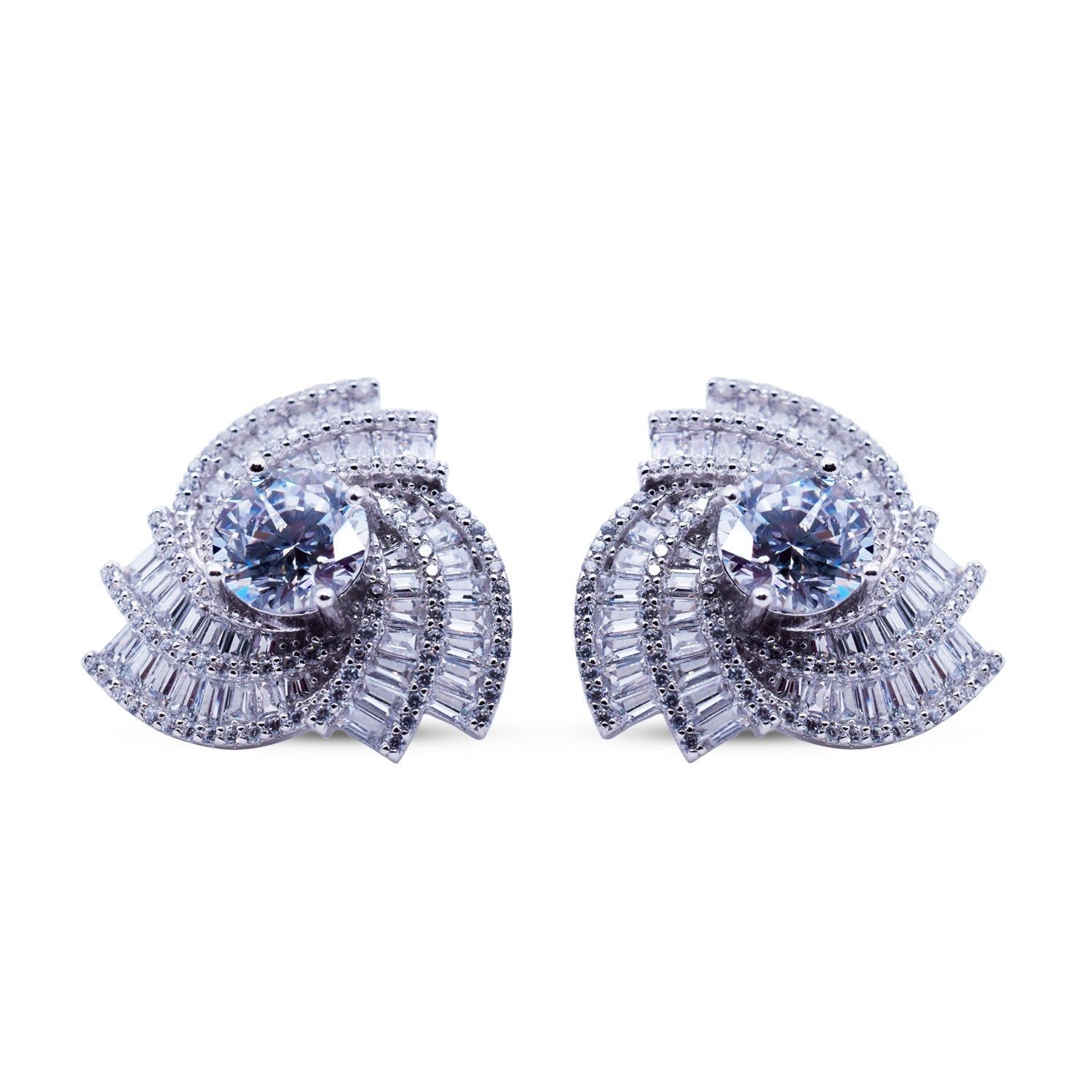 925 Silver Chakkari CZ Stud Earrings in White Gold Polish for Women