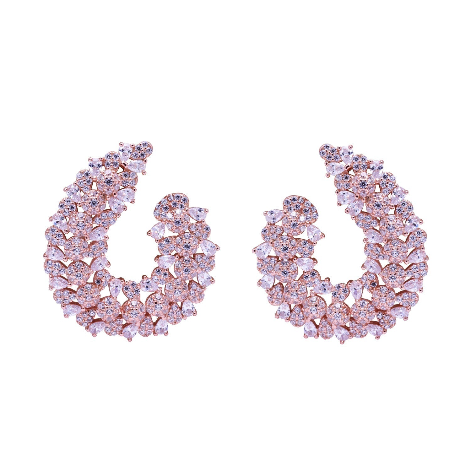 Carat Cafe 925 Sterling Silver products are made up of High Quality silver studded with Swarovski Crystal Stones. Elevate your style with this comfortable pair of earrings. Featuring a contemporary refined design, this pair is perfect to give your quintessential dressing an upgrade. This Rose gold plated jewelry is studded with cubic zirconia stones having weight approx. 12.32 grams. These are also special gifts for girls and women for birthday, for valentine gifts, graduations day gifts, wedding gifts and anniversary day gifts. Carat Cafe products are stylish and funky and are available at most affordable prices. We have wide range of 925 sterling silver Articles, Coins, Idols, Earrings, Bracelets, Pendant & Necklace set. Carat Cafe fashionable and traditional jewelry give true value for your money.