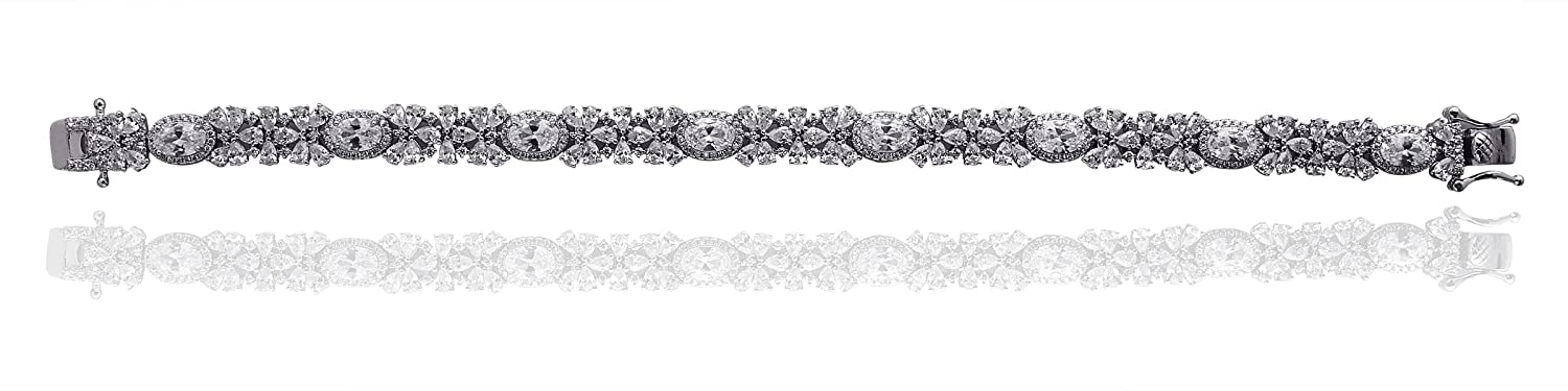 LustreCo 92.5 Silver Tennis Invisible Setting Oval Pear Round CZ In White Gold Color Plated For Women & Girls