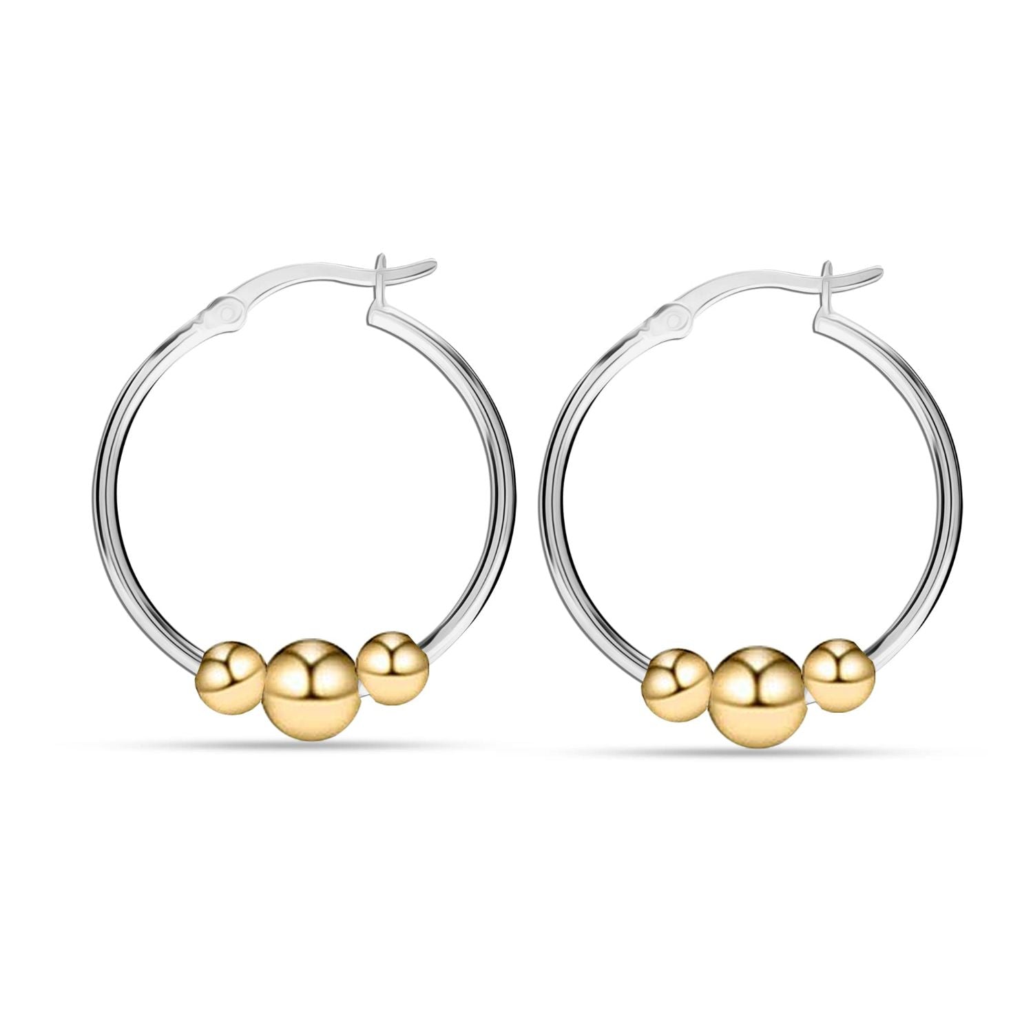925 Sterling Silver Round Two-Tone Bead Ball Hoop Earrings for Women