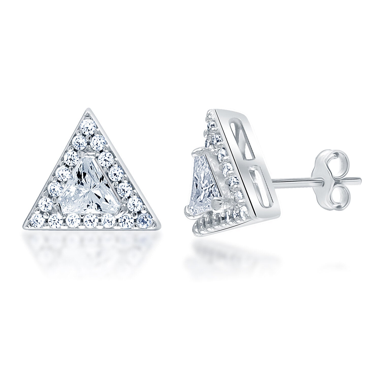 925 Sterling Silver Cubic Zirconia Sparkling White Studded Triangular Stud Earrings for Women