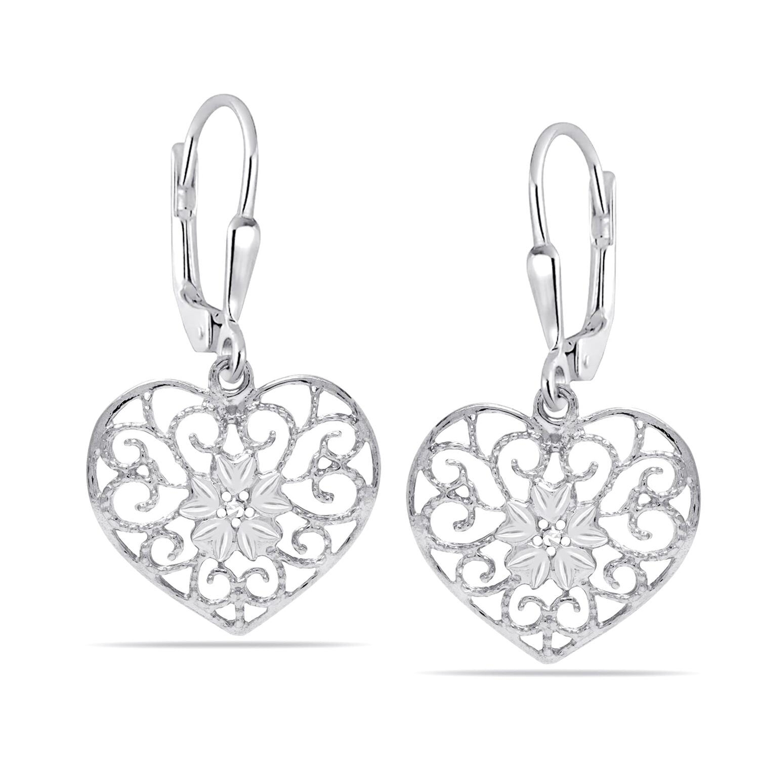 925 Sterling Silver Filigree Heart and Butterfly Floral Design Diamond-Cut Lightweight Leverback Drop Dangle Earrings for Women