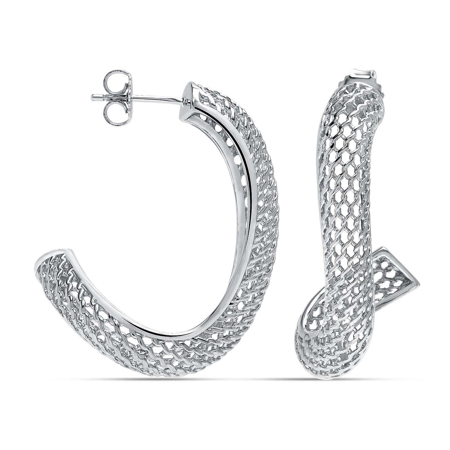 925 Sterling Silver Medium Twisted Mesh Irregular Filigree Hoop Earrings for Women