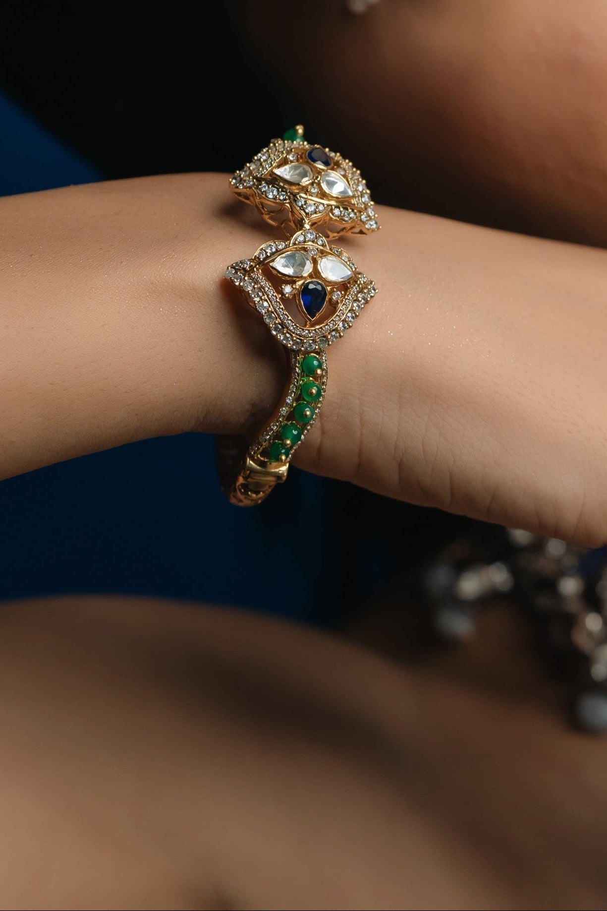 Crafted from 925 pure silver, with semiprecious stones and moissanite polki.
